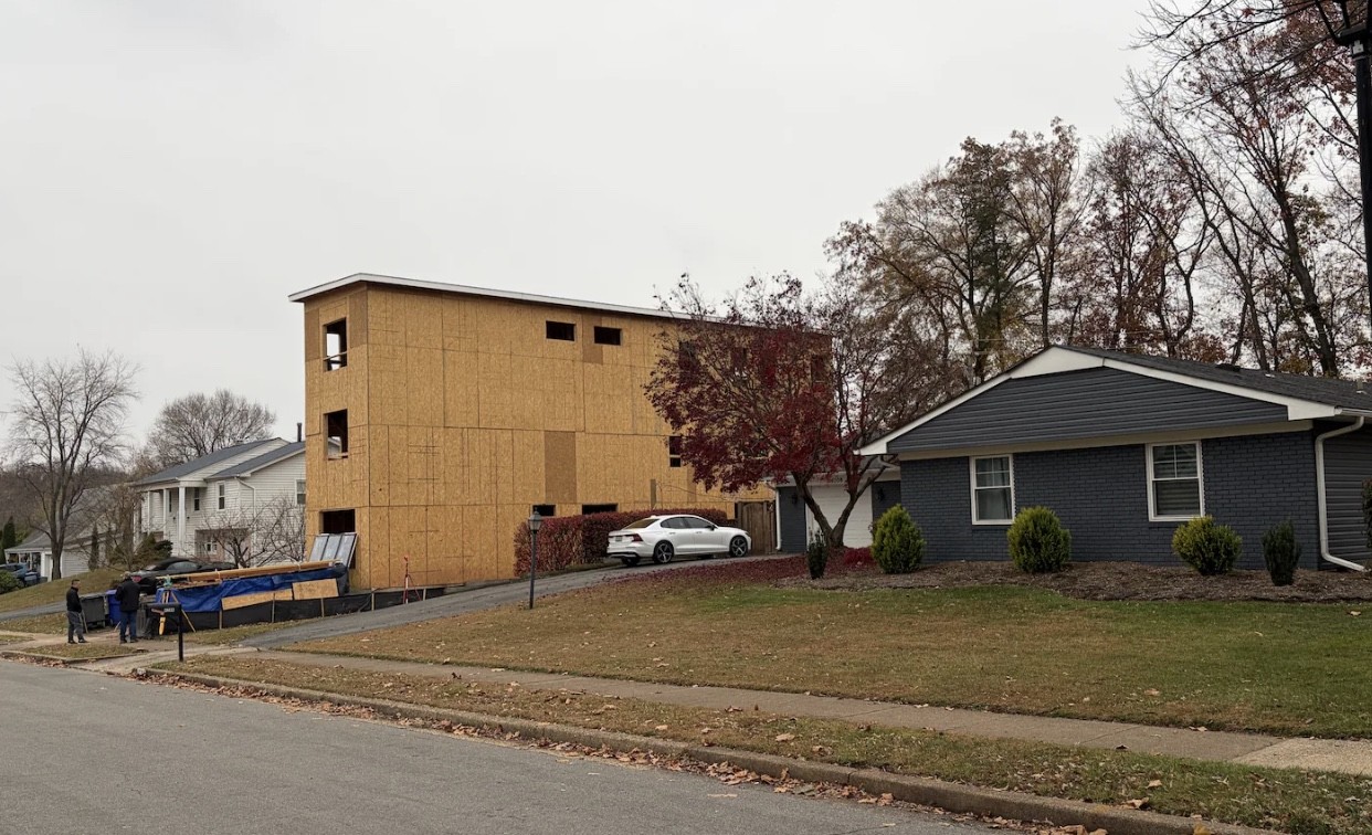 The eruption of publicity has made the quiet residential street a sort of 15-Minute County tourist destination. Cars now parade down the lane, some taking pictures of the development and at least one rolling down his window to scream obscenities. The volume of the initial protests resulted in a review by County officials to determine if the addition complied with County regulations. The initial survey indicated the towering structure might be out of keeping with the other homes on the street, but was fully compliant with existing rules.