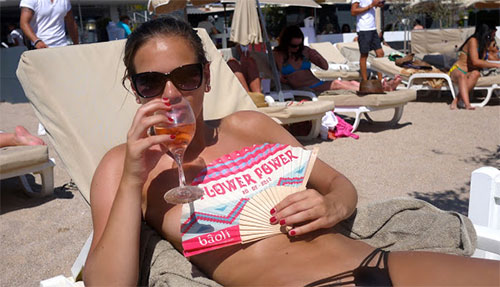 It may be New Year’s Eve but we decide to go to the beach. We find some sun worshipers who have staked out the sun-drenched space below the concrete overhang below the promenade. I gird my loins and go for the last swim of 1989, last of a tumultuous decade. I am trying hard not to ogle the unleashed breasts down the row.
