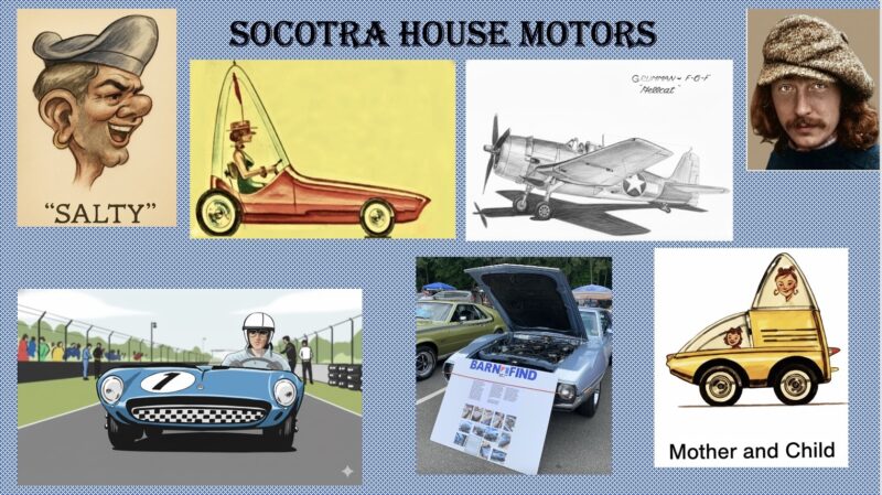 The Chairman is busy with Cyber Monday preparations to offer short hop rides in Hellcat to raise loose cash for the holiday, We have reserved the Trillium back patio to display the cars and aeronautical machines under the grey chill skies around the scrap wood burning in the oil drum out on the edge of the flat space. Management at our building was baffled when the F6F Hellcat was rolled out from the garage P-2 level. The folding wings are a real asset, since the aircraft, depicted by Vic’s Dad can slide direct into two lengthwise parking slots. The narrow profile on the husky aircraft leaves enough space for routine maintenance, and a quick take off is possible on International Drive if paying rides or local sir support is required.