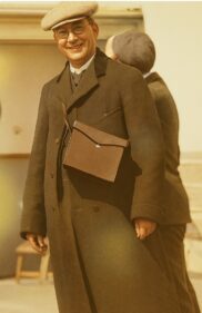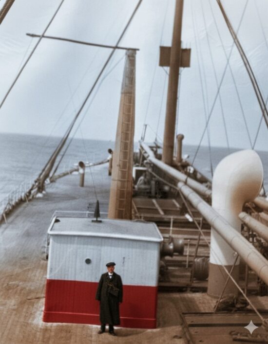 Vic claims this one below is a picture of his great grandfather on the deck of the SS Minnetonka. That ship belonged to the Atlantic Tranport Line (ATL) a subsidiary of J. P. Morgan’s International Mercantile Marine Co. (IMM). The ATL catered to wealthy American travelers and high-value cargo—including horses, automobiles, and refrigerated goods.