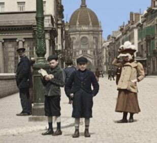 Miles was working with two things. Vic had a thick album of ancient black and white pictures arranged by his ancestor, nd digitizing them for a comparative trial between the new Artificial Intelligence programs that can modernize, enhance, edit and colorize. The thinking behind it all is that one a Monday morning, he might be able to delve into the archives, scoop up some vaguely related topics and turn the construction of the morning story over to the machine. The narratives almost write themselves, since they were, techinically, already written.