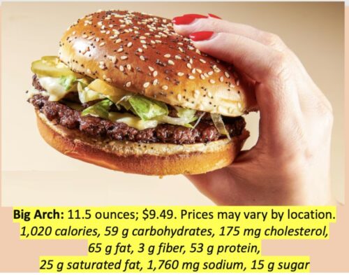 The boiled-and-baked bagel shop was born from a home kitchen in 2015 and is located at the corner of Fairfax Drive and North Vermont. The other news was a little sobering. She had done the research on the new entrée to the McDonalds menu, the Big Arch. She produced the facts on what select locations will be offering now, at almost ten bucks for the burger: