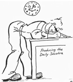 We thought this would be an exercise in being able to state a topic into the microphone on our laptops, phones and tablets. A lbor saving device that could sort more than 5,000 previous daily entries, compile them with a learned ability to mimic the Socotra style of dry wit, irony and grave regard for things that actually are important in today’s chaotic United States.