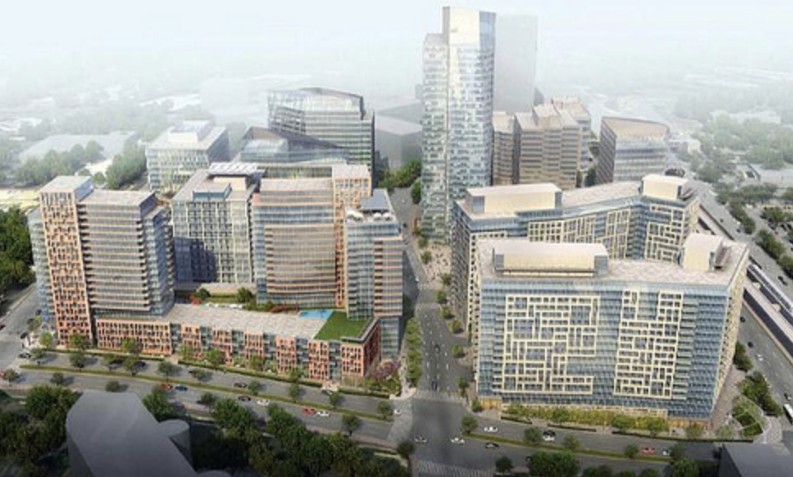 Our Corner is at the middle base of the image. When the County Board woke up and realized they were going to create another feature of pretty buildings without people most of the time, they cancelled when they realized soaring towers were going to interfere with the restoration and rehabilitation of Dulles International Airport they decided out mixed use plan for NADA and SAIC was the way to go.